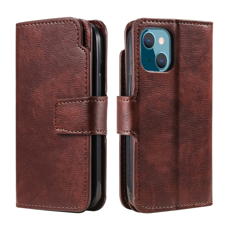 For iPhone 14 Litchi Texture 9 Card Tri-Fold Wallets Leather Phone Case(Brown)