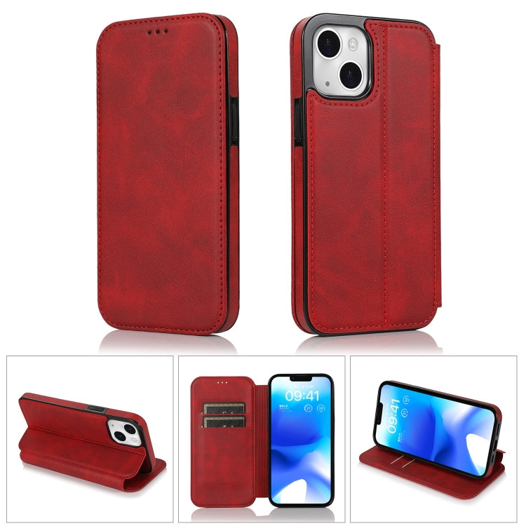 Funda para teléfono iPhone 14 Cierre Magnético Fuerte PU + TPU Cuero (Rojo)