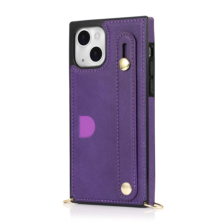 Funda para Teléfono iPhone 14 Crossbody Correa de Muñeca con Tarjetero (Púrpura)