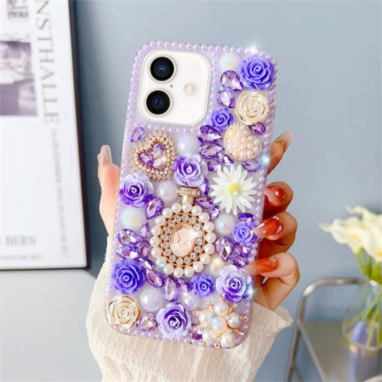 Funda para iPhone 16 Diseño de Rosa con Incrustaciones de Diamantes (Morado)
