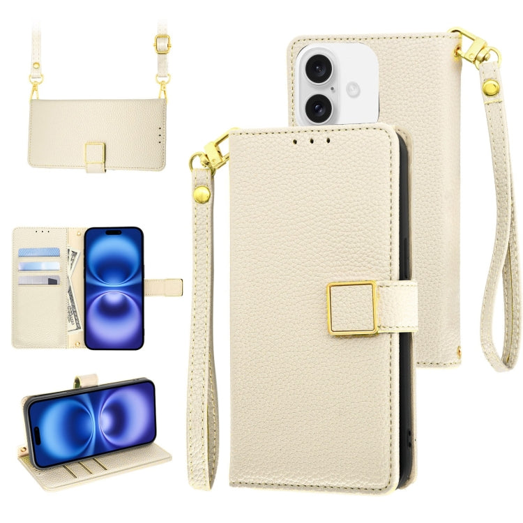 Funda de Cuero con Hebilla Cuadrada y Textura de Lichi para iPhone 16 (Blanco)