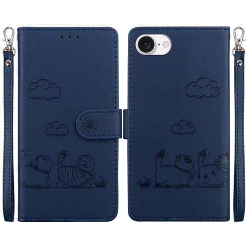 Funda de Piel para iPhone 16E con Forma de Gatito En Relieve y Cordón (Verde Menta)