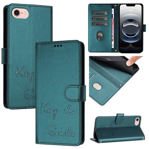Funda de Cuero Rfid con Relieve Sonriente para iPhone 16E (Verde Pavo Real)
