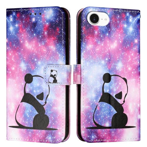 Funda de Cuero para iPhone 16E con Patrón de Dibujo de Colores (Panda Bebé)