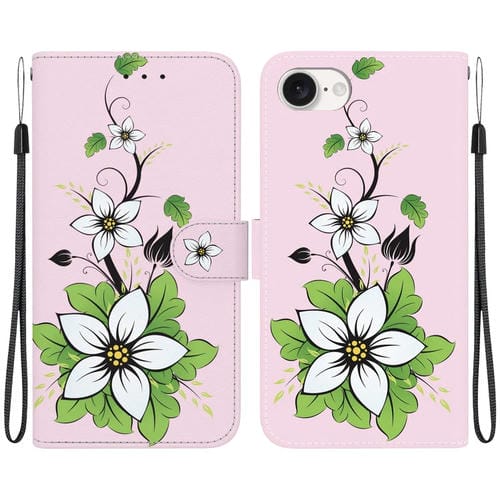 Funda de Cuero con Dibujo de Colores y Textura de Cristal para iPhone 16E (Lily)