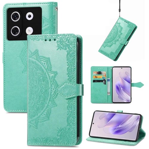 Funda de Cuero para Infinix Zero 30 4G con Relieve de Flor de Mandala (Verde)