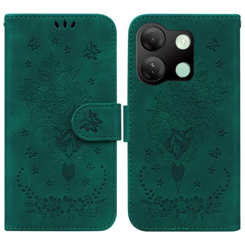 Funda de Cuero para Infinix Smart 7 HD Butterfly Rose en Relieve (Verde)
