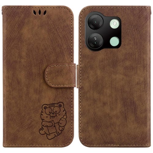 Funda de Cuero En Relieve para Infinix Smart 7 HD Little Tiger (Marrón)