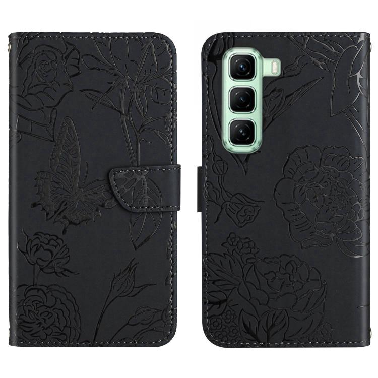 Funda de Cuero con Tapa y Mariposas En Relieve para Infinix Hot 50 5G (Negra)