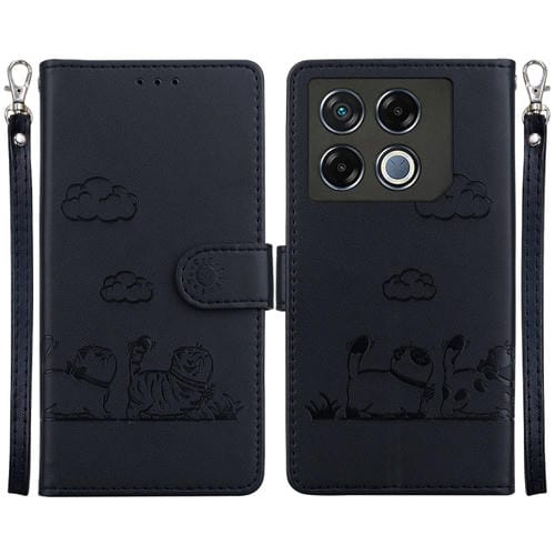 Funda de Cuero Rfid para Infinix Note 40 Pro 5G/4G con Diseño de Gatos (Azul)