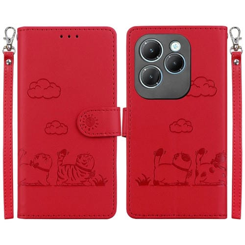 Funda de Cuero Rfid para Infinix Smart 8/8 HD/Hot 40I (Roja) con Diseño de Gatos