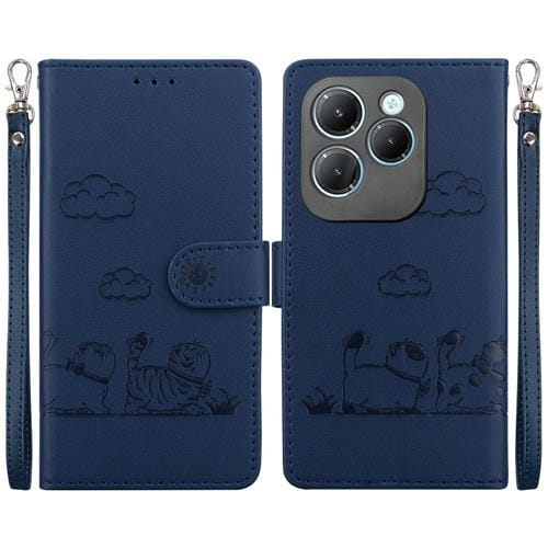 Funda de Cuero Rfid para Infinix Smart 8/8 HD/Hot 40I con Diseño de Gatos (Azul)
