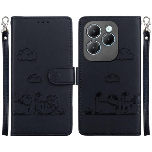 Funda de Cuero Rfid para Infinix Zero 30 5G con Diseño de Gatos (Negra)