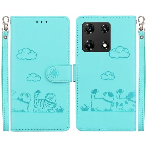 Funda de Cuero Rfid para Infinix Note 40 Pro 5G/4G con Diseño de Gatos (Verde)
