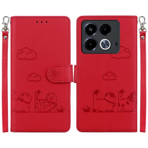 Funda de Cuero Rfid para Teléfono Infinix Note 40 4G con Diseño de Gatos (Rojo)