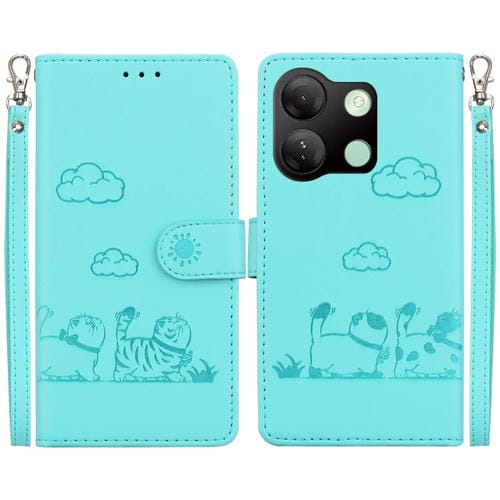 Funda de Cuero Rfid para Infinix Smart 8/8 HD/Hot 40I con Diseño de Gatos (Verde)