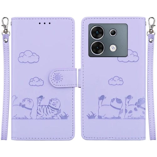 Funda de Cuero Rfid para Infinix Zero 30 5G con Diseño de Gatos (Morado)