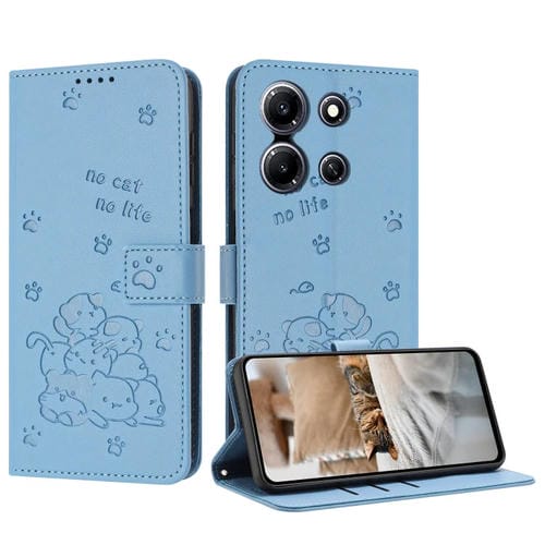 Funda de Cuero Infinix Note 30I con Diseño de Gatito En Relieve y Cordón (Azul)