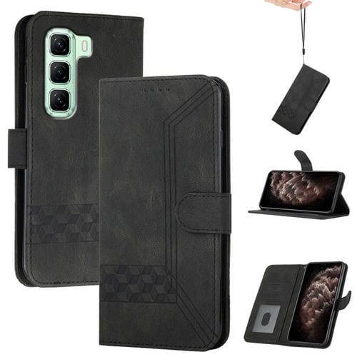 Funda de Cuero con Tapa y Tacto de Piel Cúbica para Infinix Hot 50 4G (Negra)