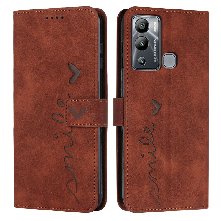 Funda de Cuero para Infinix Smart 6 Plus con Patrón de Corazón (Marrón)