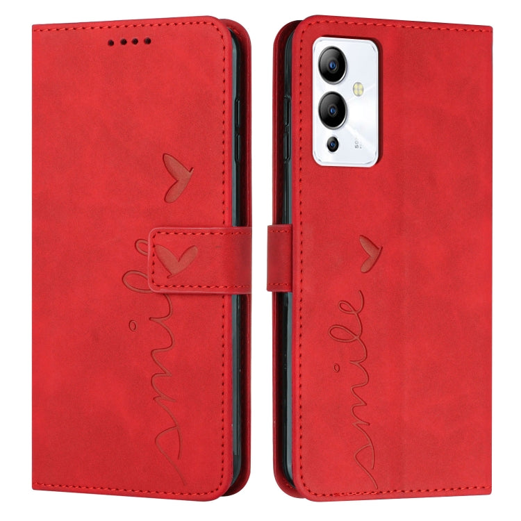 Funda de Cuero para Infinix Hot 12 Play Skin Feel con Patrón de Corazón (Rojo)