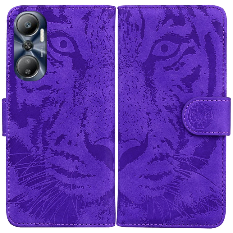 Funda de Cuero para Infinix Hot 20 5G con Estampado de Tigre en Relieve (Púrpura)