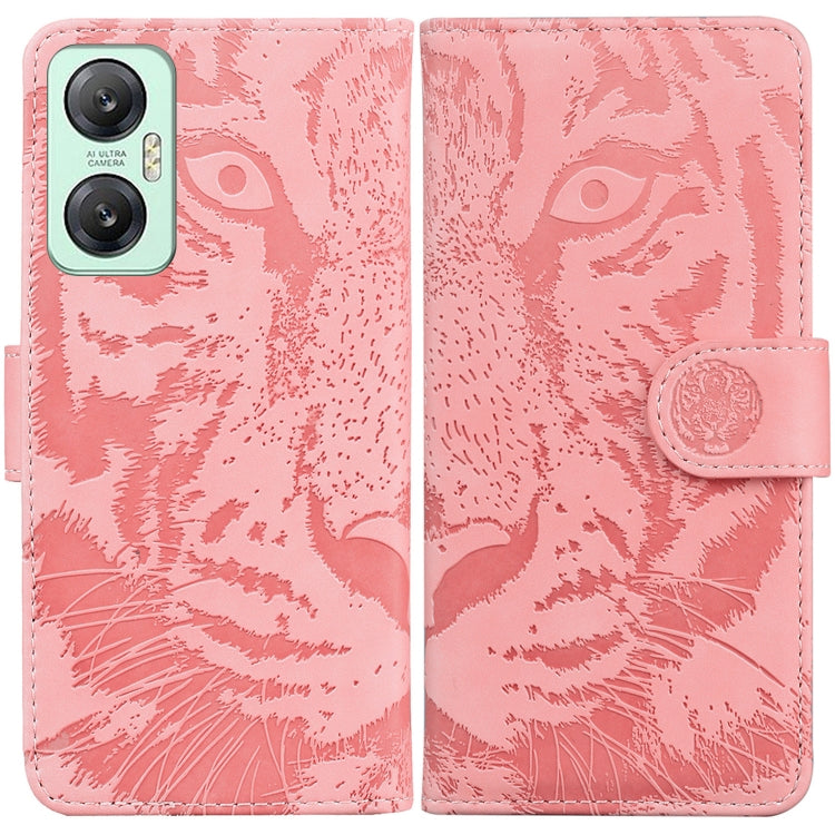 Funda de Cuero para Infinix Hot 20 5G con Estampado de Tigre en Relieve (Rosa)