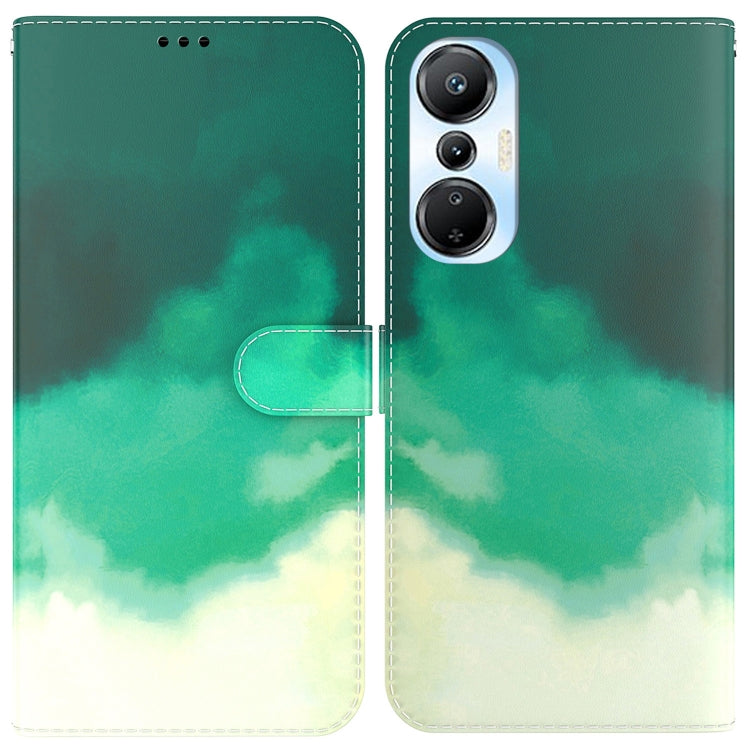 Funda de Cuero para Infinix Hot 20S con Patrón de Acuarela (Verde Cian)