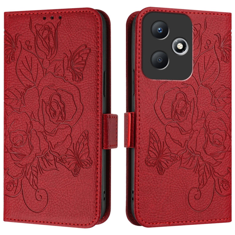Funda para Infinix Hot 30 Play cuero antirrobo RFID con relieve NFC (Rojo)
