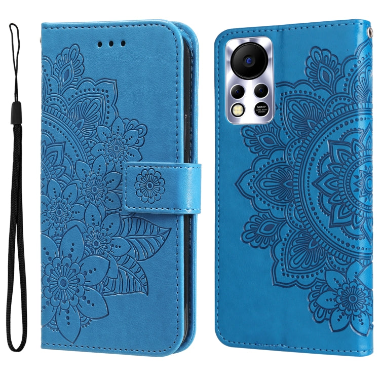 Funda Flip Leather para Infinix Hot 11S NFC con Flores de 7 Pétalas (Azul)