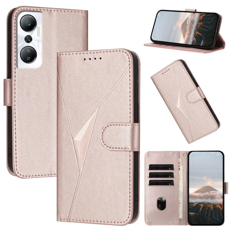 Funda de Cuero con Hebilla y Diseño Triangular para Infinix Hot 20 4G (Oro Rosa)