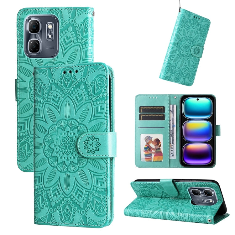 Funda de Cuero con Relieve de Girasol para Infinix Hot 50I Smart 9 (Verde)