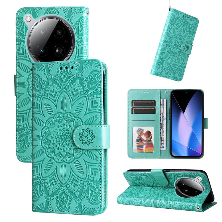 Funda de Piel con Relieve de Girasol para Teléfono Infinix Zero 40 4G/5G (Verde)