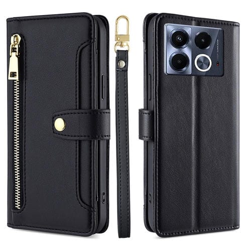 Funda de Cuero con Cremallera y Textura de Oveja para Infinix Note 40 5G (Negro)