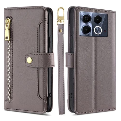 Funda de Cuero con Cremallera y Textura de Oveja para Infinix Note 40 5G (Gris)