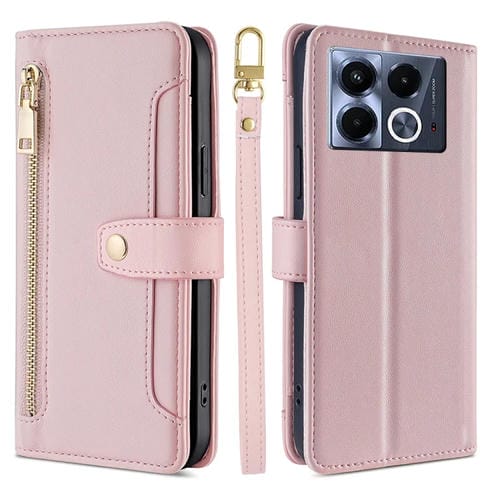 Funda de Cuero con Cremallera y Textura de Oveja para Infinix Note 40 5G (Rosa)