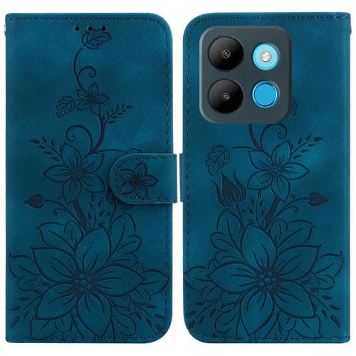 Funda para Infinix Smart 7 African / X6515 Lily de Cuero en Relieve (Azul Oscuro)
