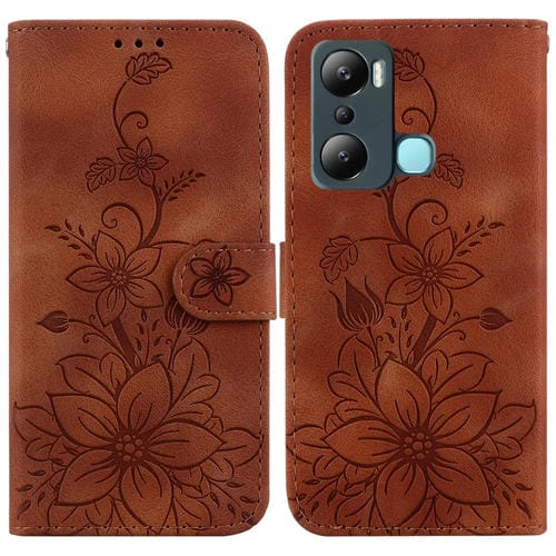 Funda de Cuero En Relieve para Infinix Hot 20I Lily para Teléfono (Marrón)