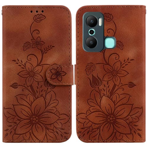 Funda de Cuero para Infinix Hot 30 Play / X6835 con Relieve Lily (Marrón)