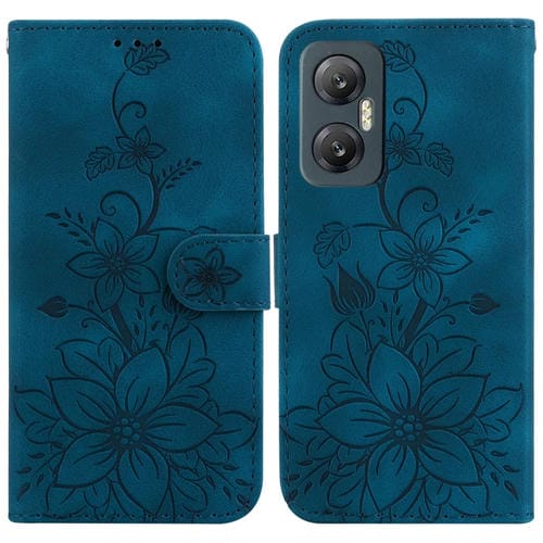 Funda de Cuero En Relieve para Infinix Hot 20 5G Lily para Teléfono (Azul Oscuro)