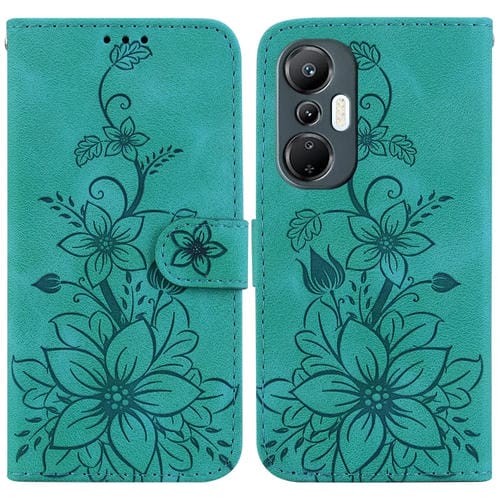Estuche para Teléfono Infinix Zero 20 / X6821 Cuero con Relieve de Lirio (Verde)