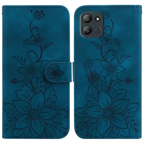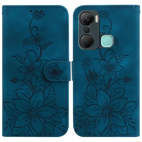 Funda para Teléfono Infinix Hot 11 2022 Cuero con Relieve Lily (Azul Oscuro)