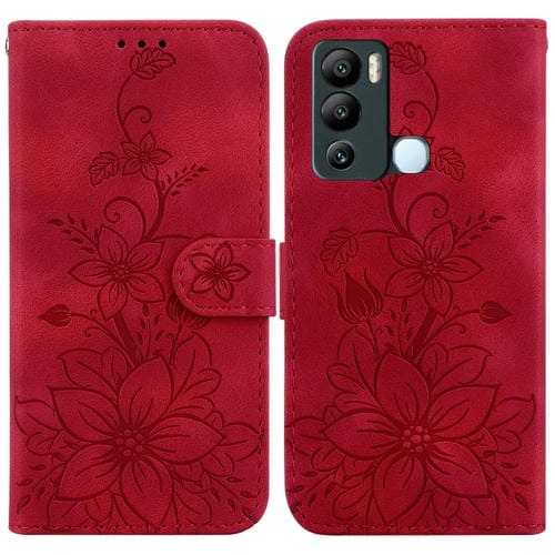 Funda de Cuero En Relieve para Infinix Hot 12I Lily para Teléfono (Rojo)