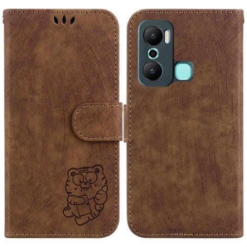Funda de Cuero para Infinix Hot 20 Play Little Tiger en Relieve (Marrón)
