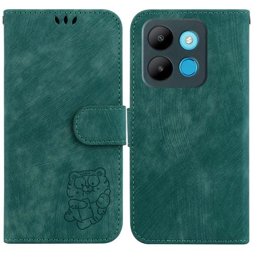 Funda para Infinix Smart 7 African 6515 de Cuero con Relieve Little Tiger (Verde)