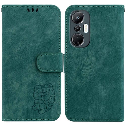 Funda de Cuero en Relieve para Infinix Hot 20 Little Tiger para Teléfono (Verde)