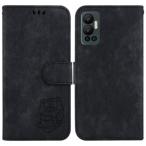 Funda de Cuero En Relieve para Infinix Hot 12 Little Tiger para Teléfono (Negro)