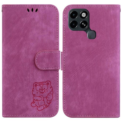Funda de Cuero para Infinix Smart 6 con Relieve Little Tiger (Rojo Rosa)