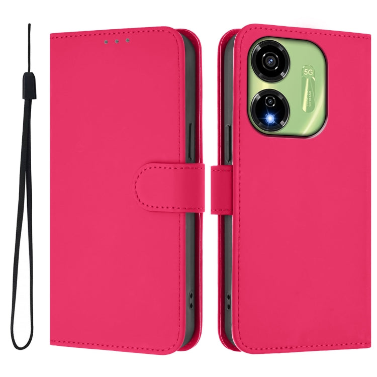 Funda de Piel Sintética con Cordón para Teléfono Itel P55 5G (Rosa y Rojo)