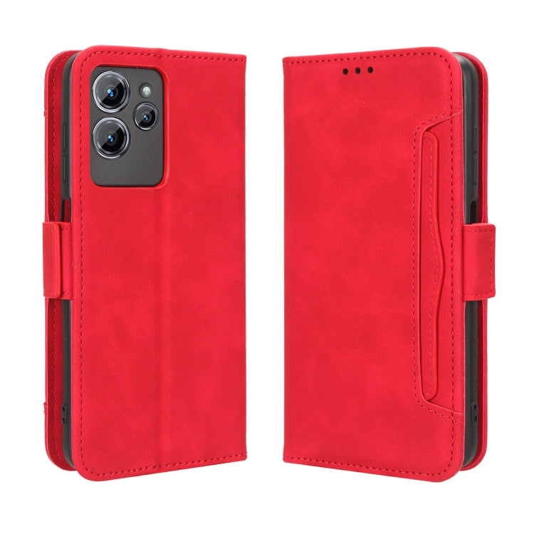 Funda de Cuero para Oukitel C32 con Textura Becerro y Ranuras para Tarjetas (Rojo)